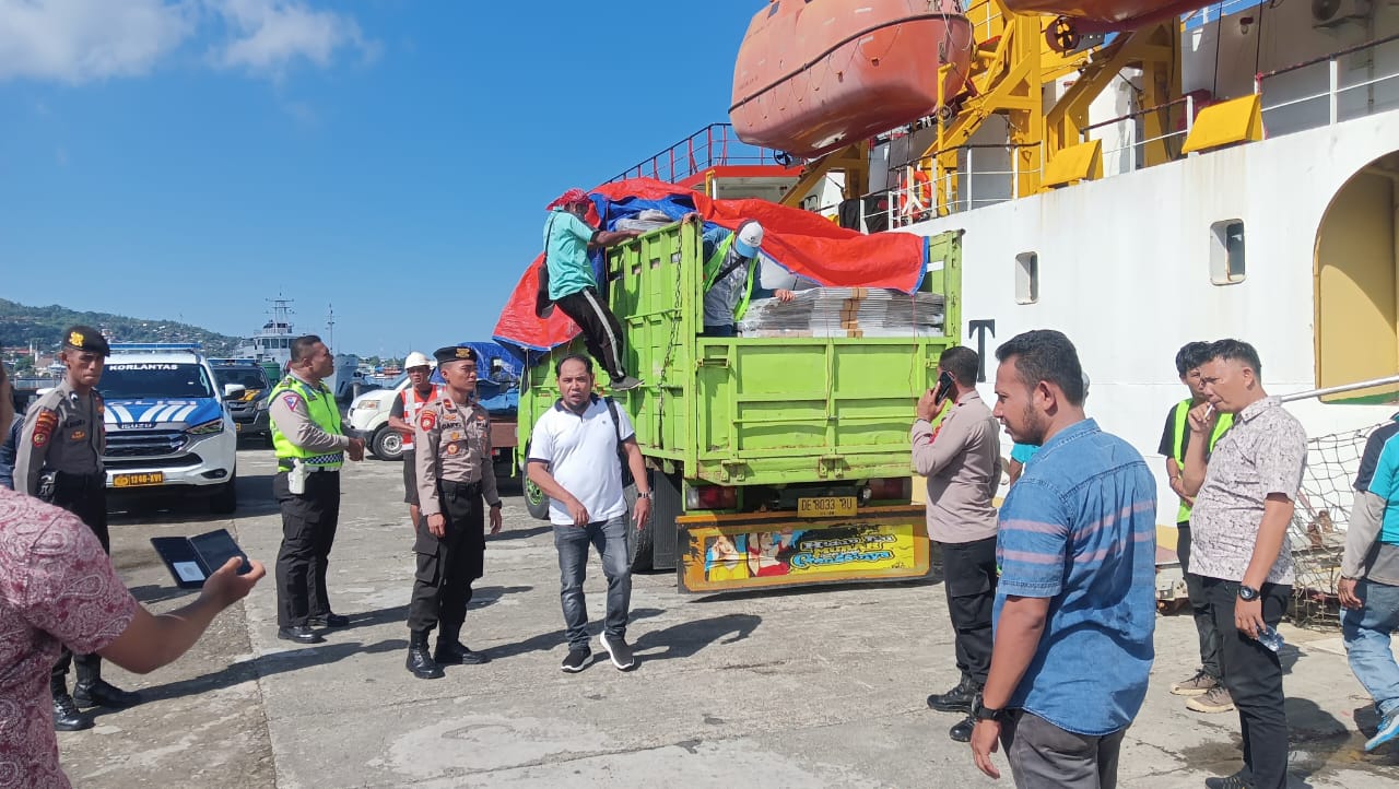 Proses pengamanan dilakukan mulai dari kontainer yang berada di Pelabuhan Terminal Peti Kemas Ambon, hingga diangkut ke atas Kapal Perintis Sabuk Nusantara 87.