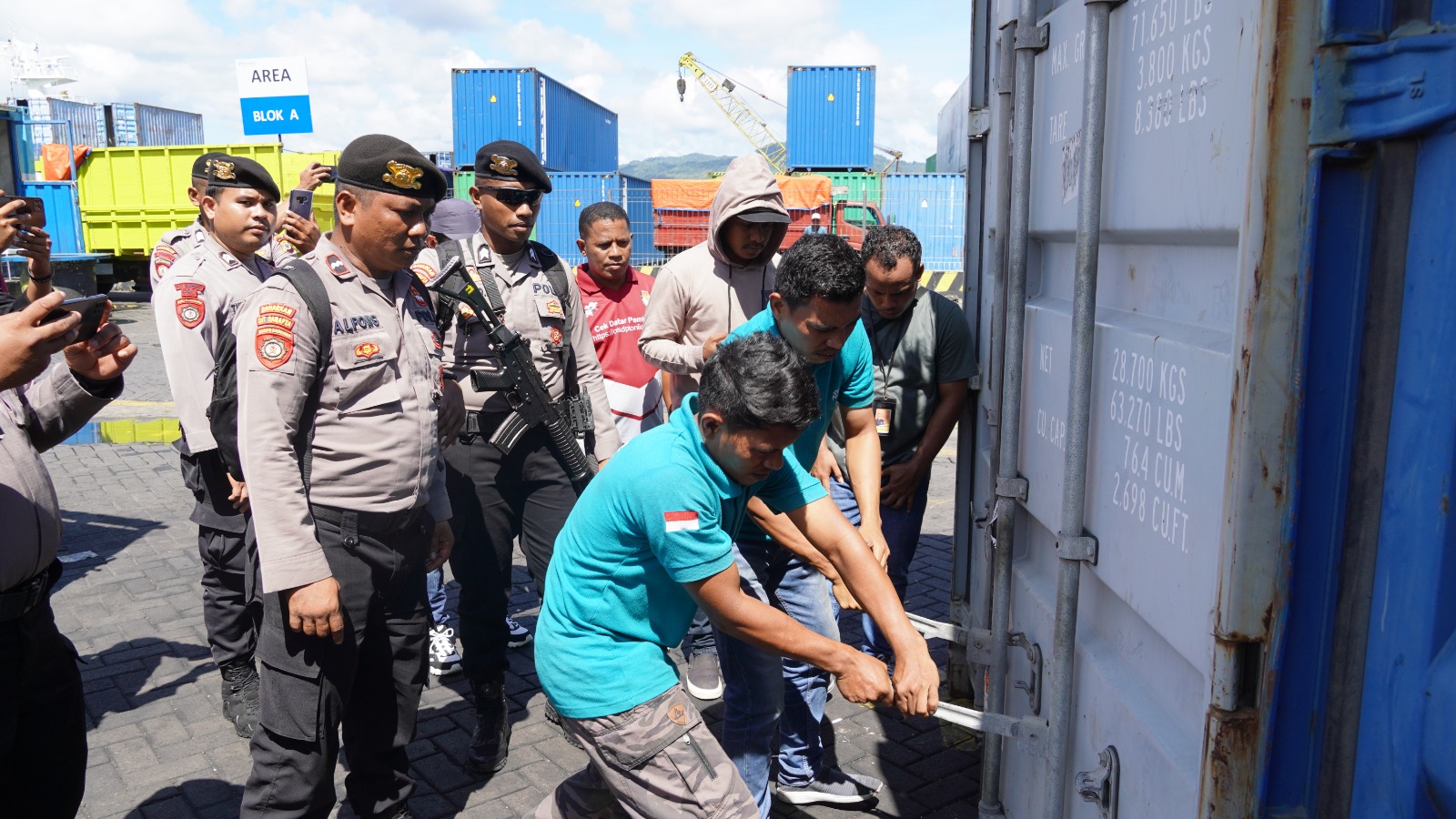 Pengamanan dan pengawalan dilakukan sejak proses pembongkaran logistik pemilu yang tersimpan di Pelabuhan Terminal Peti Kemas Ambon.