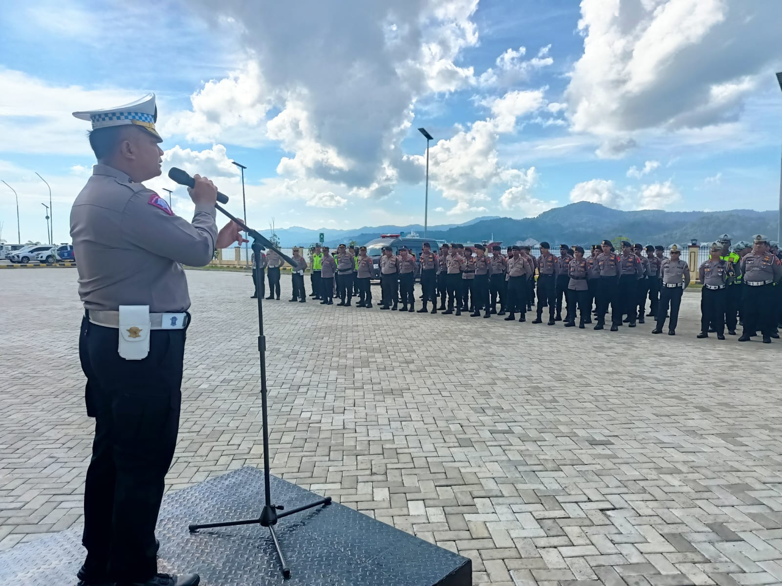 Apel kesiapan pengamanan ibadah malam Natal dipimpin Kasubdit Regident Direktorat Lalu Lintas Polda Maluku AKBP. Indra Sandy Purnama Sakti, dan diikuti seluruh Kasatgas dan Kasubsatgas Operasi Lilin Salawaku Polda Maluku.