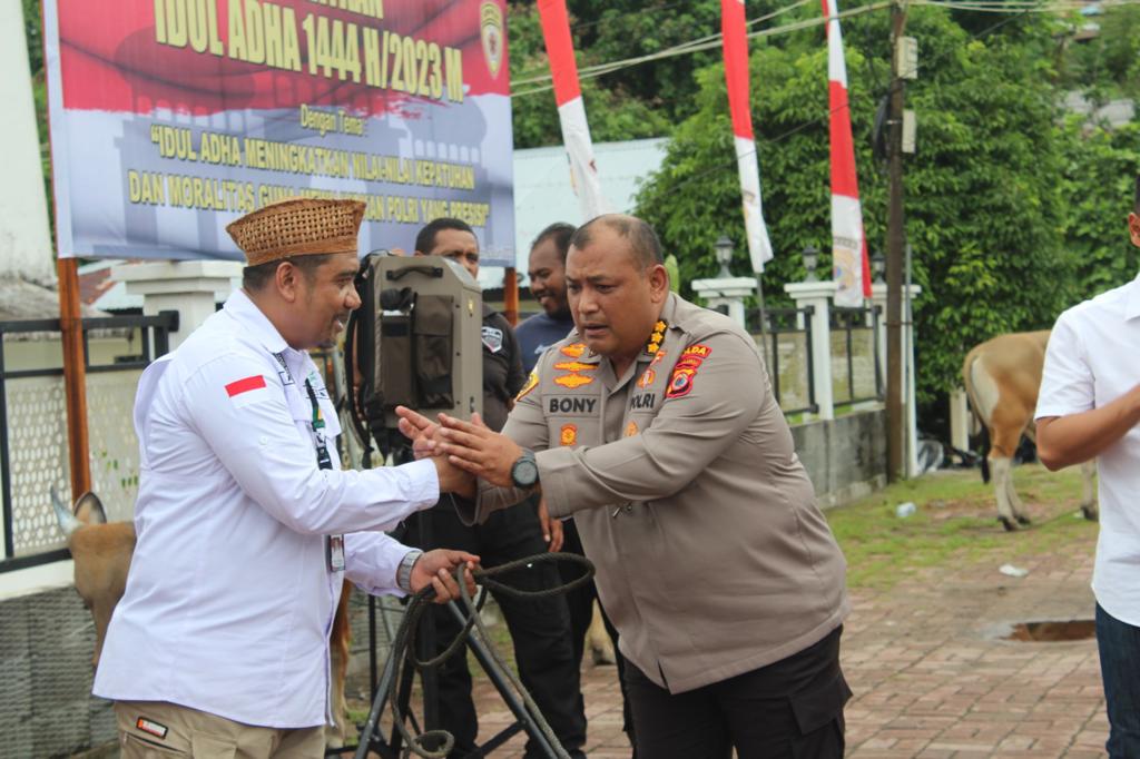 Penyerahan hewan kurban secara simbolis diberikan Karo SDM Polda Maluku Kombes Pol Bony J.S. Sirait, yang bertempat di Masjid At-Taqwa, Tantui, Kota Ambon, Rabu (28/6/2023).