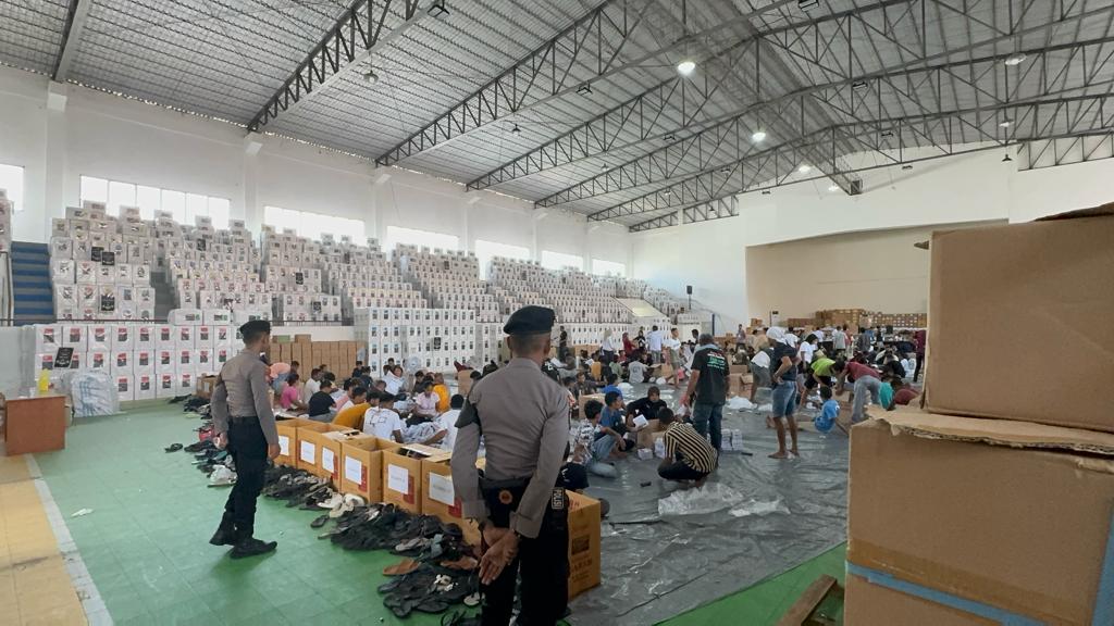 AMBON,DM.COM,-Personel Satgas Preventif OMB Salawaku 2024 Polresta Ambon melaksanakan patroli dan pengecekan di Gudang Logistik Pemilu yang bertempat di Sporthall Karang Panjang (Karpan), Kota Ambon.