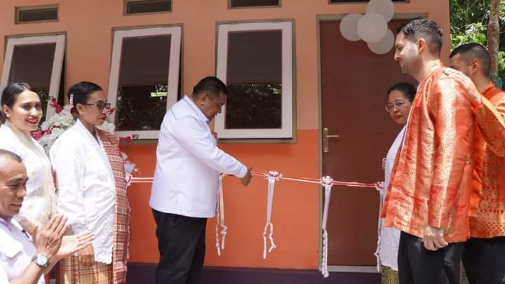 AMBON, DM.COM,- Sekertaris Kota Ambon, Agus Ririmasse, meresmikan gedung Pendidikan Anak Usia Dini (PAUD), Pancaran Kasih Dusun Toisapu, Negeri Hutumuri, Kecamatan Leitimur Selatan, Kota Ambon, Rabu ( 11/10/23).