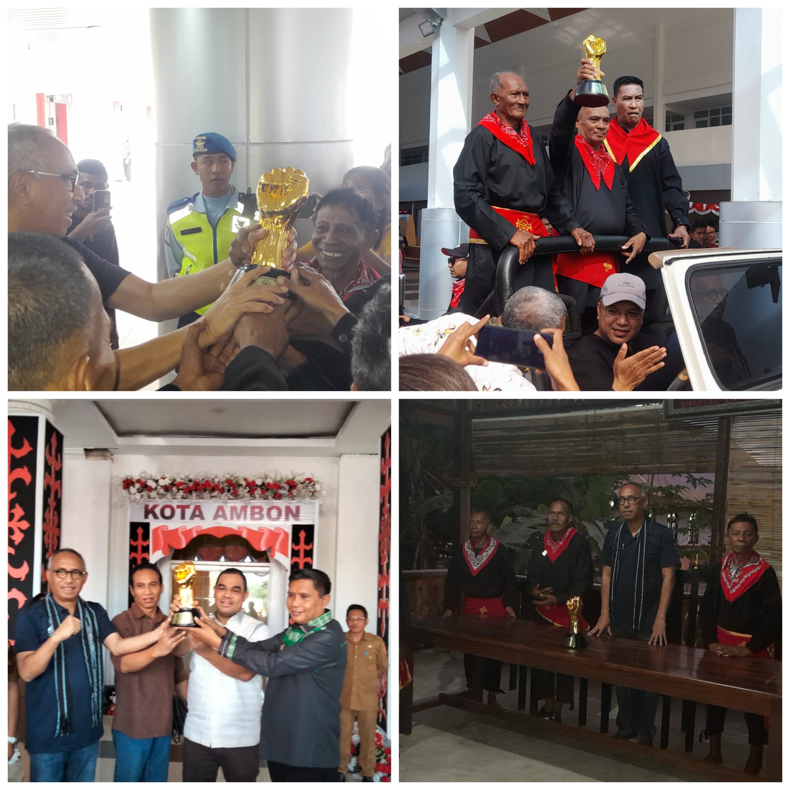 Pantauan DINAMIKAMALUKU.COM, ketika Maspaitella, tiba di pintu kedatangan dengan membawa Tropy, langsung disambut para Saniri dan tokoh adat Rutong dan Majelis Latupatti Provinsi Maluku dan Latupatti Kota Ambon.