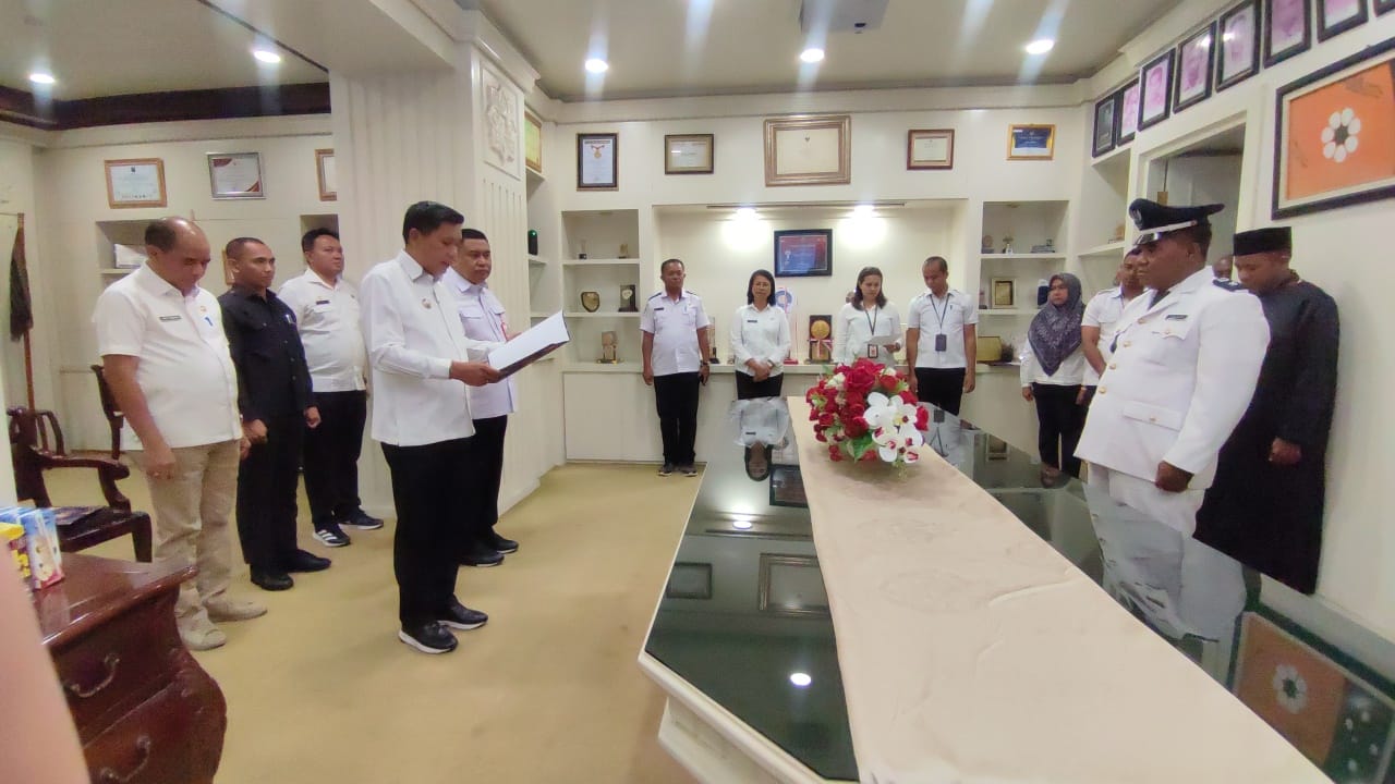 AMBON,DM.COM,-Penjabat (Pj) Walikota Ambon, Bodewin Wattimena, secara resmi melantik Usman Ely, sebagai Kepala Desa Waiheru, diruangnya, Rabu (24/10/2023).