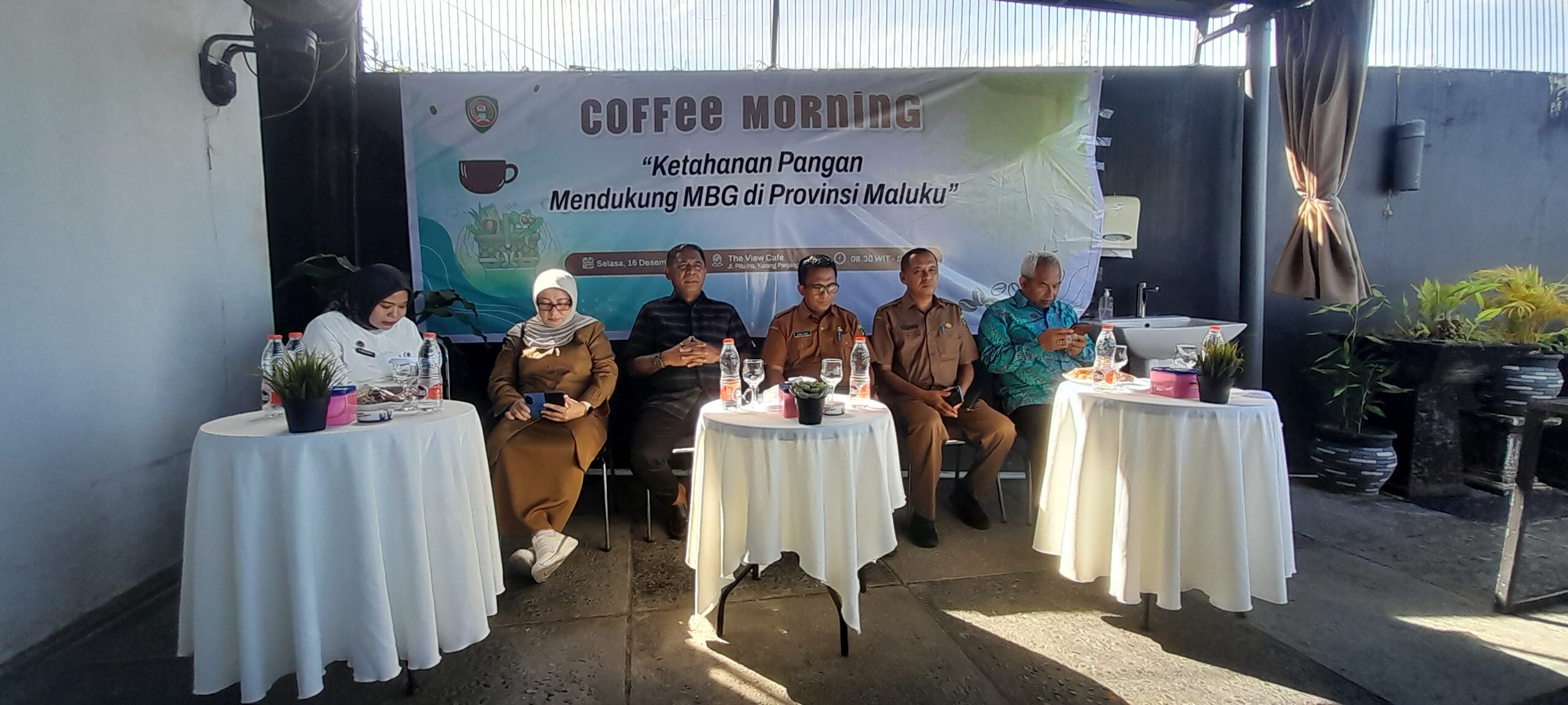 Ini tercermin ketika Dinas Kominfo Provinsi Maluku, menggelar Coffee Morning terkait, “Ketahanan Pangan Mendukung MBG di Provinsi Maluku,” di Cafe View, Selasa (16/12/2025).