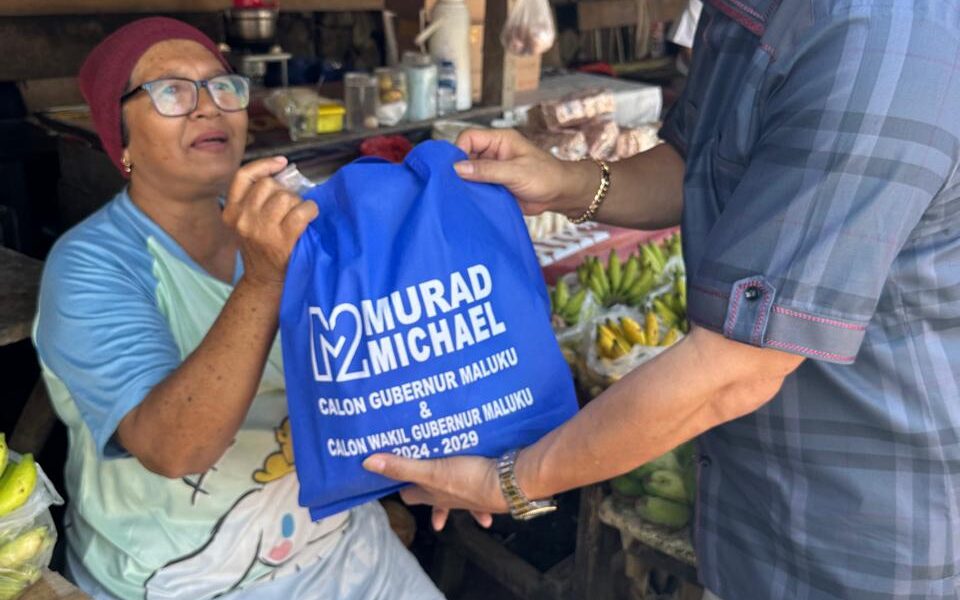 AMBON,DM.COM,-Bakal calon (balon) Wakil Gubernur Maluku, Michael Wattimena, kembali menyalurkan paket sembako kepada para pedagang di Pasar Transit, Desa Passo, Kecamatan Baguala, Kota Ambon, Jumat (26/7/2024)....