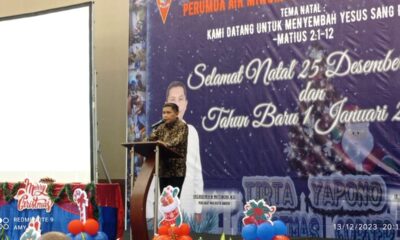 AMBON,DM.COM,-Penjabat Walikota Ambon, Bodewin Wattimena menghadiri perayaan Natal Perusahaan Umum Daerah Air Minum (PERUMDAM) Kota Ambon, di Hotel Santika, Rabu (13/12/2023). Perayaan Natal perusahaan milik Pemeirntah...