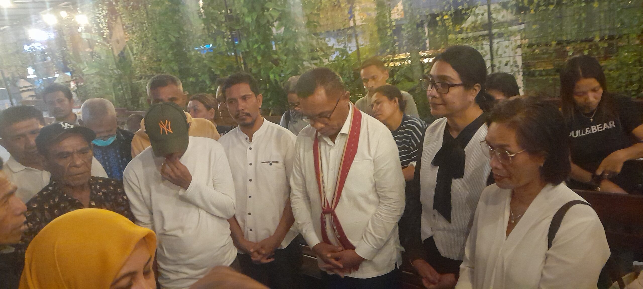PF dan dua terdakwa lainya bersama keluarga dan pendukungnya kemudian berdoa yang dipimpin pendeta di depan ruang sidang di Pengadilan Tipikor Ambon. (DM-04)