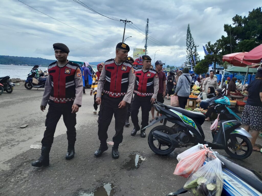 AMBON,DM.COM,– Untuk mencegah potensi gangguan keamanan pasca-perayaan Idul Fitri 1447 Hijriah, personel Operasi Ketupat Salawaku 2026 dari Polda Maluku terus menggencarkan patroli di sejumlah titik keramaian, salah satunya di kawasuan Pasar Mardika, Senin (23/3/2026).