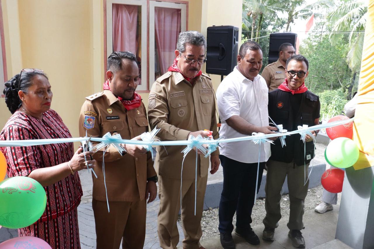 Pada kesempatan itu, Wabup Malteng mendampingi Gubernur Maluku, Hendrik Lewerissa mengunting pita pengresmian penyerahan Bantuan Kapal Literasi serta Perpustakaan Ramah Anak di Pulau Saparua dirangkai dengan Penyerahan Bantuan Alsin, Bibit Tanaman serta Ternak kepada Kelompok Tani, Senin (8/12/2025).